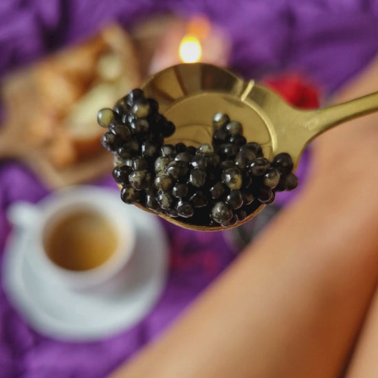 Black Caviar Truffle delivers a rich, creamy taste enhanced by the earthy, aromatic depth of white truffle. Its smooth, velvety texture and balanced intensity create a refined, gourmet profile that stands out from traditional caviar. Each medium-sized pearl offers a harmonious blend of buttery caviar richness and elegant truffle aroma, resulting in a bold yet polished flavor ideal for elevating both simple and elaborate dishes.